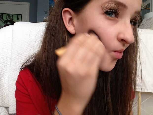 Hacer una cara de "pescada" por aspirar en su mejilla. Trace el cepillo a lo largo del pliegue que acaba de hacer.