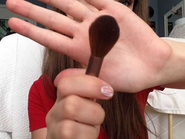 Poner el cepillo en el bronzer otra vez y barrer las esquinas de tu frente