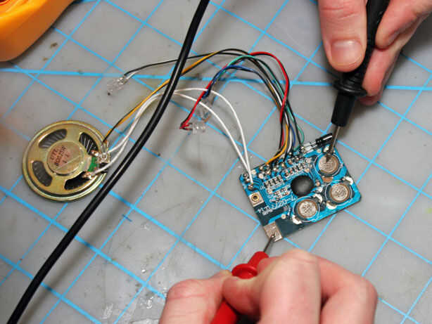 A continuación, es un resbalón pequeño del papel entre un metal de plomo y un contacto. Deja ese trozo de papel en o sufrir la ira de sus cohortes / vecinos (reproducirá continuamente). Una línea de datos en la parte superior del interruptor y una línea para el contacto con el suelo al lado de la soldadura. Ambas de estas líneas necesitan conectarse a Arduino (ver paso de cableado).
