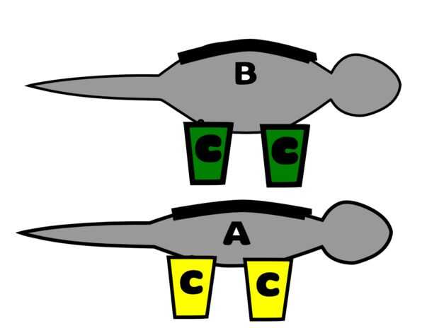 Los puntos de la pieza A y B son donde deben colocarse las piernas.