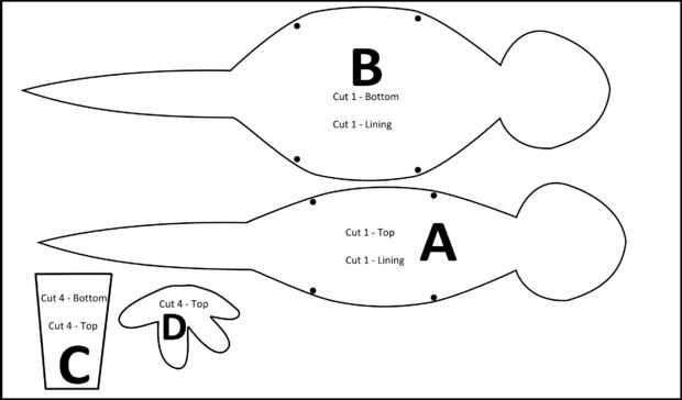Reloj hacia fuera! Aquí viene algo complicado... Tomar las cuatro piezas restantes de C y coser en dos secciones de distintas patas (como tubos). Debe empezar a coser el tubo con los lados mal hacia fuera antes de coser en el lado equivocado de la parte superior del cuerpo (parte A). Sin duda Estimado lector, esta parte fue un poco difícil y la mejor analogía que podría subir con era que debería intentar coser los tubos de la pata como si fuera una manga.