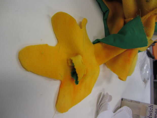 Imprima o esboce el patrón adjunto sobre tela y cortar las capas como se describe en el diseño. Luego, coser el forro a la correspondiente pieza exterior con "mal lados juntos." Sin embargo, asegúrese de dejar la cabeza abierta cuando cose las guarniciones como el agujero resultante le permitirá rellenar el cuerpo más tarde. Luego, marcan dos lados correspondientes dejar abierta así que usted puede poner el esqueleto interior. Cuando construimos nuestra Leopold, nos conserva la apertura entre los puntos en uno de sus lados. En concreto, hemos tenido suerte dejando un agujero en la sección entre sus piernas a su izquierda (en la parte superior el patrón... ver la segunda foto).