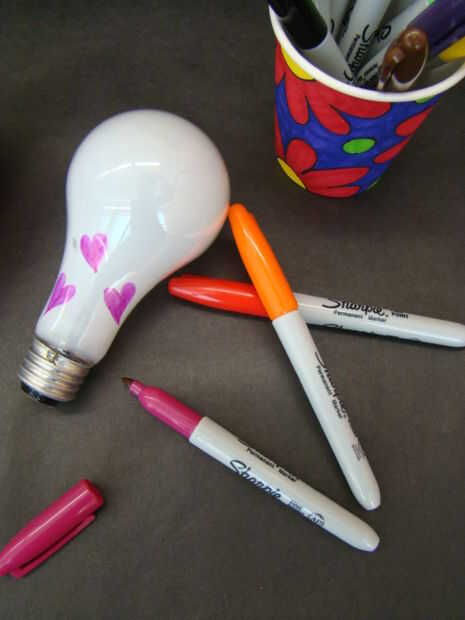 Como sus alas se secan, use marcadores permanentes para decorar la lámpara. Deje que sus jugos creativos fluyen.