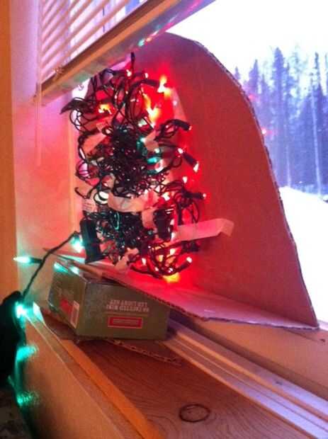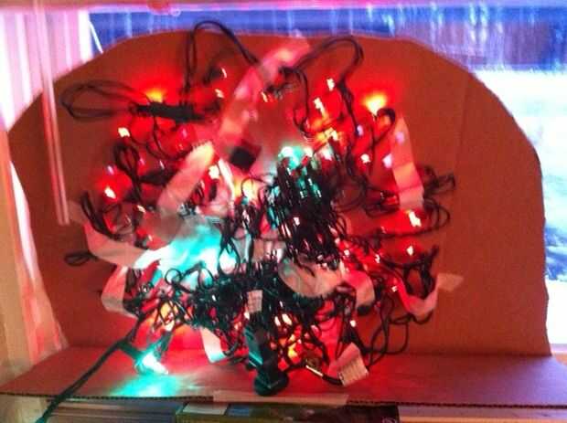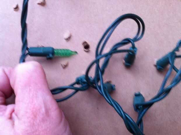 Asegúrese de tomar la cinta y cubrir los orificios perforados, pero no tenía bulbo. Sólo con cinta adhesiva de la parte frontal de la decoración de la Navidad ahora terminada.