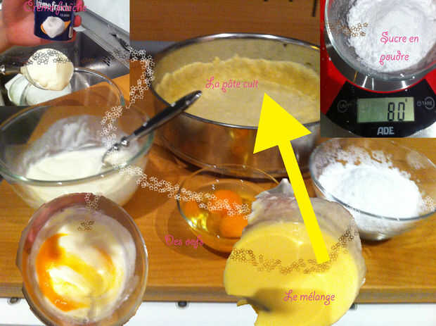 Mélangez la crème fraiche avec le sucre en poudre et les œufs. Sol de le de la sur "liquide le avec un pinceau appliquez" et le bord de la pâte précuit.