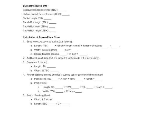 Cálculo de la longitud de la correa de la muestra: Cubo superior la circunferencia es de 36". Añadir 1/2 pulgada para el margen de costura; y 4 pulgadas, por la recomendación del fabricante, para garantizar el cierre. Total requerido longitud es 40,5 pulgadas.
