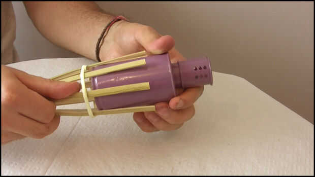CoolPero este mi idea.Paso 1: la pistola Es bastante obvio.Te hace falta...botella de píldora advil pequeña--2 tachuelas-tubo de la plumaignighter - barbacoa (dentro de un encendedor multiuso)-alambre-cinta eléctricaPaso 2: construir Cortar el extrem