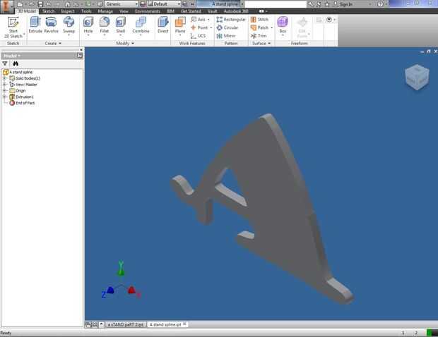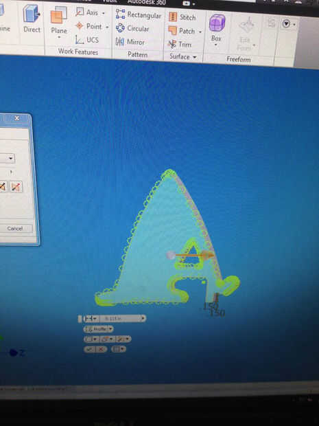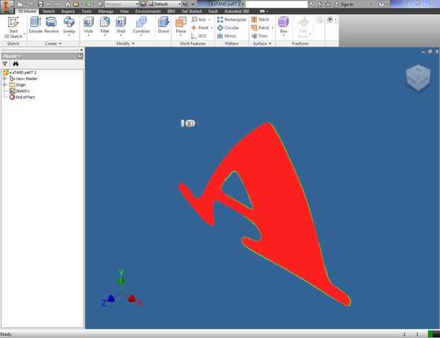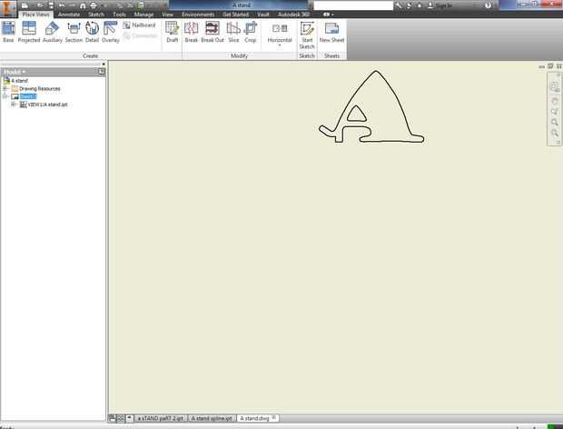Utilicé el software de dibujo, en este caso 2015 Inventor para escribir una letra A en una fuente que tenía una especie de una ficha naturalmente que sobresalen de la parte inferior como base para sostener el teléfono real. Una vez que encontré la fuente que pensé que era lo mejor, que luego de ajustar su tamaño por lo que sería capaz de sostener mi teléfono. Luego utilicé una función spline, que le permite hacer clic en una serie de puntos y se conecta a una línea, para trazar los bordes de la A que sabía que iba a mantener el mismo. He creado diferentes líneas recta, justo debajo de la pestaña para sujetar el teléfono para hacer fichas para insertar en un soporte para sostener que el 's vertical. convertí los dibujos en un archivo dxf para utilizar en la impresora láser en mi escuela que corta madera para diseños.