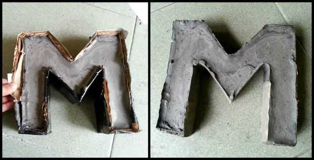 Cuando el cemento se seca usted puede conseguir fácilmente la letra concreta fuera del molde.