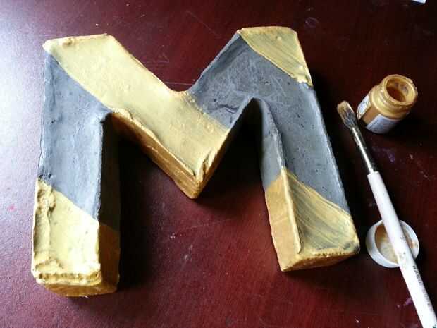 Utilizar pintura de tela para diseños simples de color en la letra de hormigón,