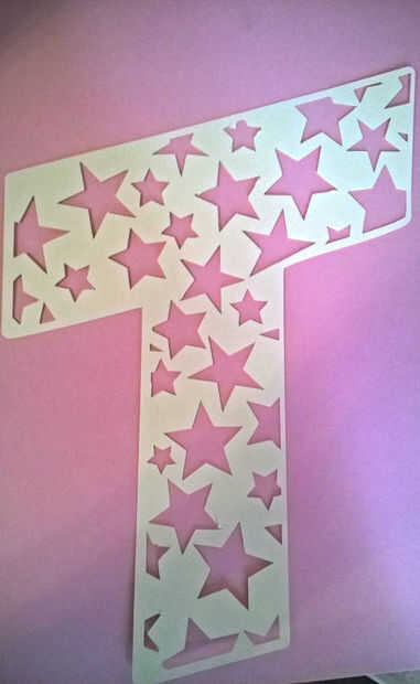 Mi primo y su esposa están actualmente esperando y parece que voy a ser alistado en la decoración de la guardería. Este proyecto es para hacer arte en nombres con un tema con dibujos (estrellas en este caso).