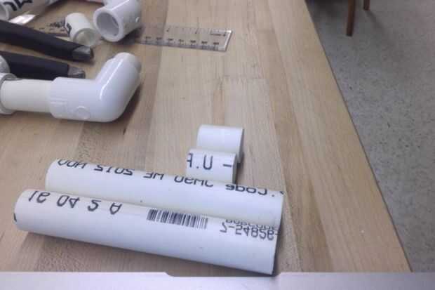 Corte pulgadas dos 1 piezas del pie del pvc y divide las restantes 10 pulgadas por la mitad. Que le da dos de 1 pulgada y dos 5 pulgadas piezas