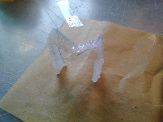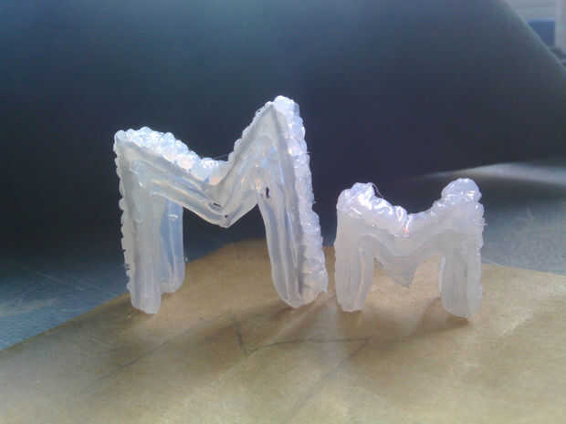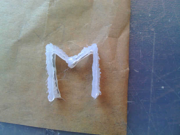 Tienes que llenar los agujeros con pegamento. Espere hasta es frío y duro. Si la letra se acaba, que sea lo más grueso.