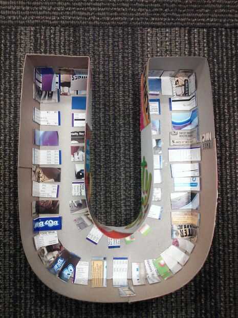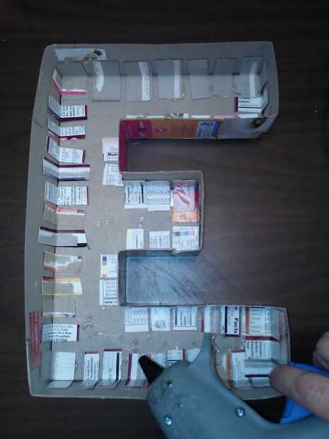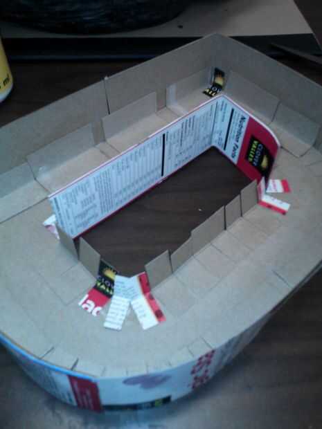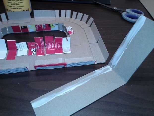 Corte tiras de 2-1/2" de ancho de las cajas de cereales. Pegamento en las lengüetas que colocados en el borde exterior de la carta.