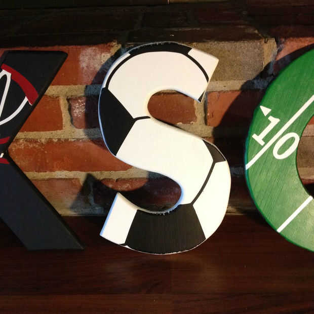 Este es un DIY de 12"(o cualquier tamaño usted compra) Letras pintaron con diferentes deportes. Que he proporcionado el .studio3 (archivo de camafeo de silueta) para descargar, o se puede comprar listo para usar plantillas en mi tienda.