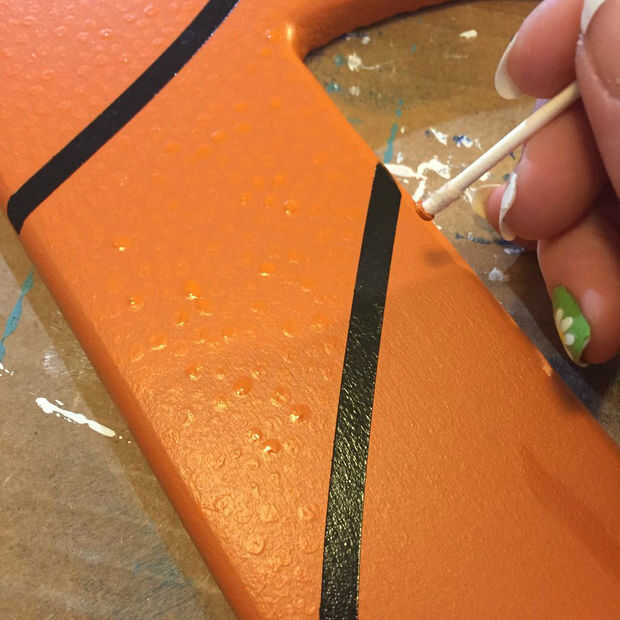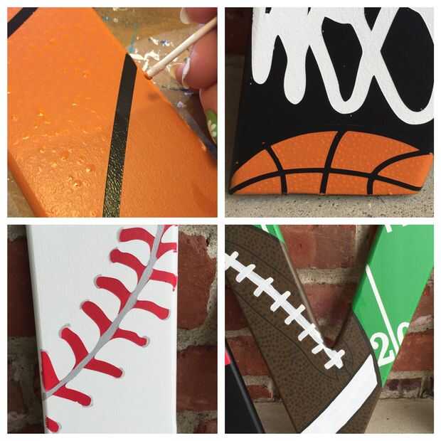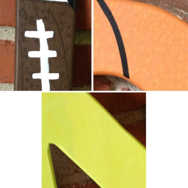 Me gustaria agregar detalles simples para darle un poco más realista sensación. Yo sólo a mano alzada con pinceles. Para hacer los puntos en el balompié y el baloncesto me realmente cortar la punta de un q-Tip y utilice el palillo redondo para sumergir en pintura y luego a la carta para hacer la forma de círculo.