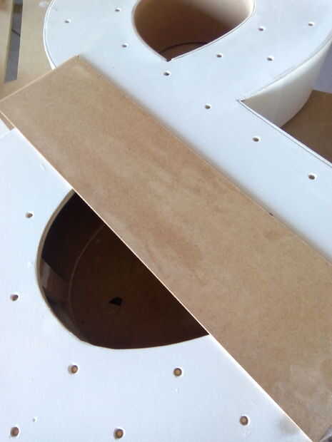 Cerrar las letras, utilizado 1 tablero de MDF de 1220 x 2440 x 3 mm cortado en placas de 1220 x150mm y poder trabajarlos, para realizar las curvas tenemos dos alternativas: