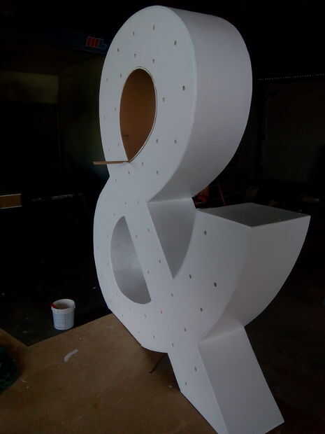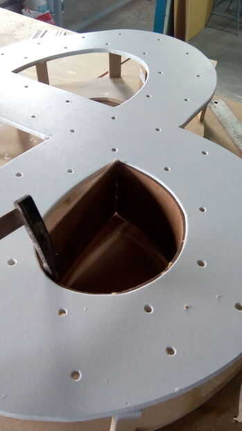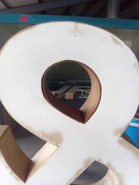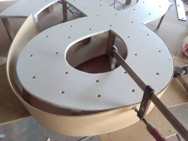 Cerca de las letras, utilicé 1 tablero MDF 1220 x 2440 x 3 mm cortar placas x150mm 1220 y trabajar para hacer las curvas que tienen dos alternativas: