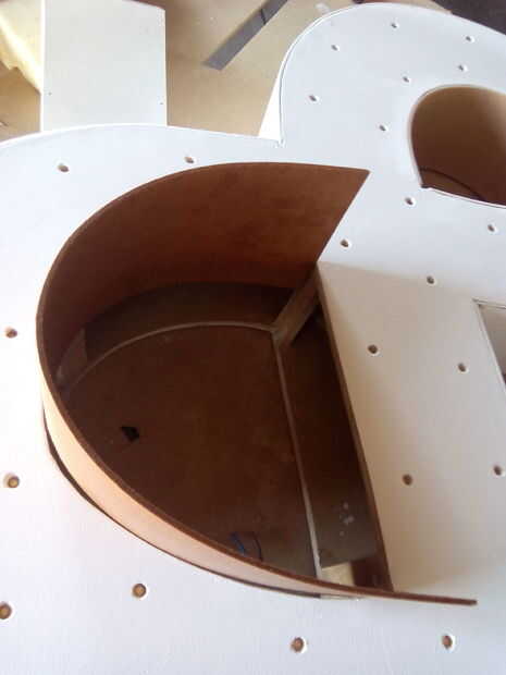 -"No tenemos elección" (basado en la fabricación de barriles) que consiste en placas mojadas MDF hasta que tiene la flexibilidad para adaptarse a la curva y esperar a que se seque, el resultado es bastante satisfactorio, pero algo más lento.