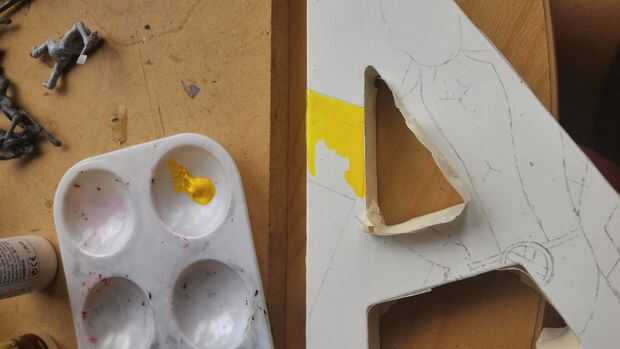 Hacer primero los colores claros. Porque estoy usando sólo negro y un color de acento brillante, esto significa que el acento de color se enciende primero, luego el negro.