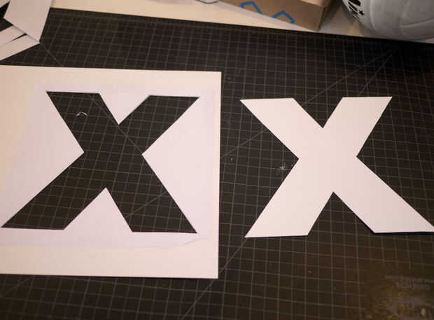 Cinta de cada una de las hojas a un pedazo de la cartulina y cortar las letras