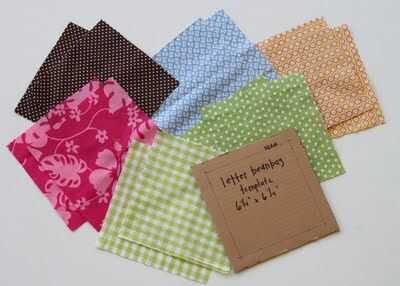 Hacer un plantilla cuadrada 6 1/4 "x 6 1/4" y usarlo para cortar 2 cuadrados de cada trozo de tela de desecho.
