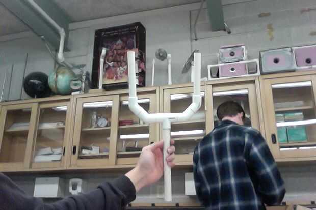 se reúnen materiales que son 2 conectores de 45 grados, 1 conector de 90 grados y 12 en tubo de pvcPaso 1: Corte pulgadas dos 1 piezas del pie del pvc y divide las restantes 10 pulgadas por la mitad. Que le da dos de 1 pulgada y dos 5 pulgadas piezas