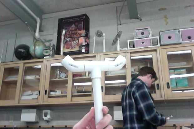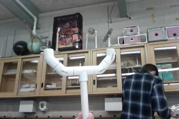 -Quinto paso: Tomar la última de codos de 45 grados y sujete al 1 1/2" tubo de pulgada, haciendo lo mismo a la izquierda y la derecha.