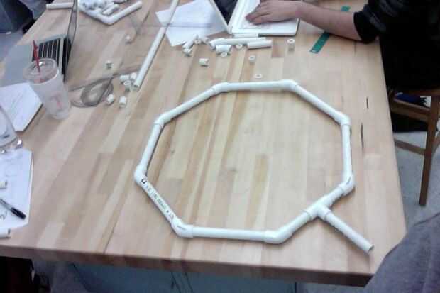se reúnen materiales que son 2 conectores de 45 grados, 1 conector de 90 grados y 12 en tubo de pvcPaso 1: Corte pulgadas dos 1 piezas del pie del pvc y divide las restantes 10 pulgadas por la mitad. Que le da dos de 1 pulgada y dos 5 pulgadas piezas