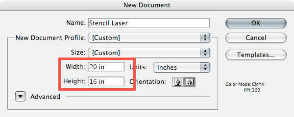 1. abrir el Illustrator. Será útil establecer el tamaño del documento para que coincida con el tamaño de la gama de impresión de su cortador del laser.