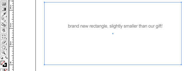 2. tenemos que hacer un rectángulo que define los bordes de la etiqueta del regalo. Utilice la herramienta de rectángulo y hacer un rectángulo de 1 pulgada más pequeña que la cara más grande de su regalo de cada dimensión (si no tienes tus reglas en Illustrator, hacerlo pulsando comando + r. Le ayudará).