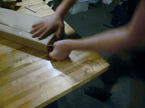 3. use un cuchillo del exacto para limpiar los bordes finos de papel extraviado o pegamento.
