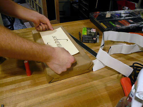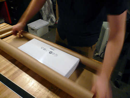 1. envolver su regalo en el papel de embalaje, utilizando el procedimiento normal de la cinta y doblez.