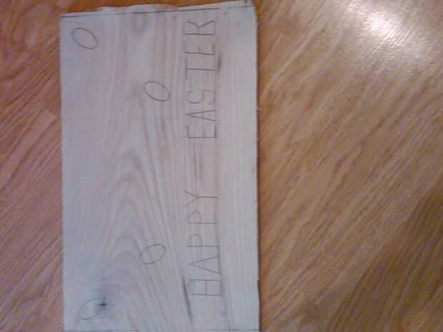 Usted tendrá que rastrear los huevos, letras y bunny en la madera donde quieras. Asegúrese de que sea lo suficientemente oscuro para que pueda ver bien.