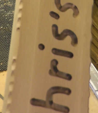 ¿Cómo uno transporte una muestra de madera de 6 x 4 pies en todo el mundo en una maleta de equipaje de mano?Como mi primer experimento con el chorro de agua OMAX, hice un letrero de madera de 6 pies para una oficina de un startup de tecnología, llama