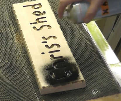 Para este paso necesita alguna pintura en aerosol. Usé pintura de aerosol del coche en negro pero se puede utilizar cualquier color que usted quiere. Rocíe el signo asegurándose de que consigues la pintura en todas las letras y en los bordes enrutados. Una vez que esto ha sido rociado, dejar que se seque según las instrucciones de la pintura de aerosol.