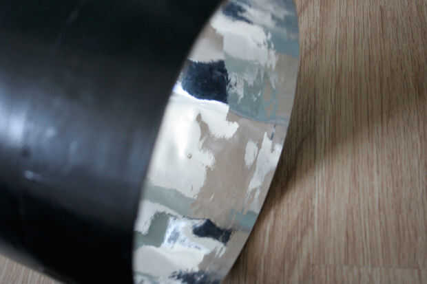 Tomar el reflejo, papel de plata. Medir cómo es alto es el tarro de madera. Medida exacta! Con el lápiz y la regla dibujas del tamaño en el reflejo, papel de plata. Ahora usted puede cortar hacia fuera en un movimiento recto.