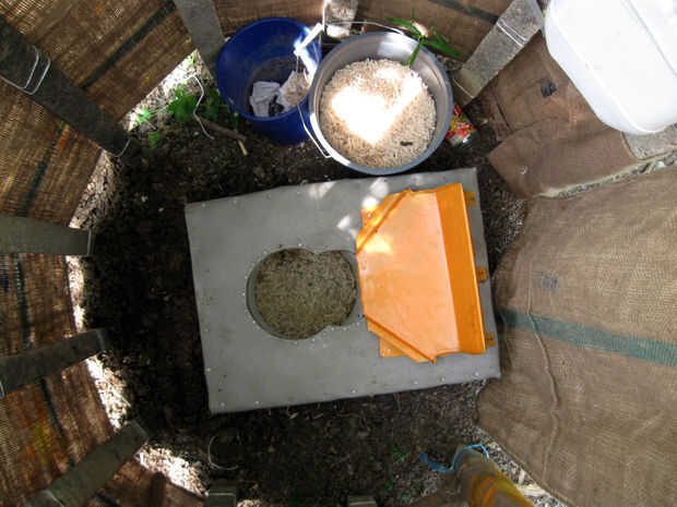 Sin embargo, para mi sorpresa, hay absolutamente ningún olor de la letrina. La diferencia entre la letrina tradicional y letrina es que el de la manera tradicional los residuos se recogen crudo, líquidos y sin mezclar con otros materiales orgánicos, en un ambiente cercano sin aire. Por lo que se descompone muy lentamente, emitiendo gases malolientes y olor. Por el contrario, en el inodoro de compostaje descomposición empieza inmediatamente, tan rápido que incluso no puede oler.