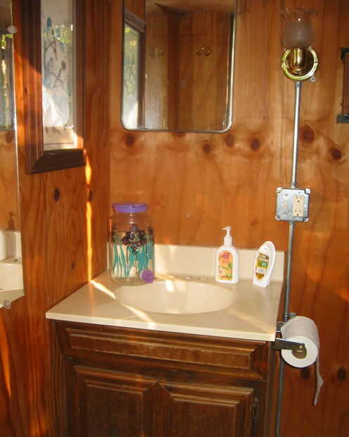 Es el mismo sistema que utilizan en la cocina en la cabina. Mucha agua, pero no tiene desperdicio, llevando entonces el agua no es gran cosa. Todos los días te llevas un par de galones por ahí.