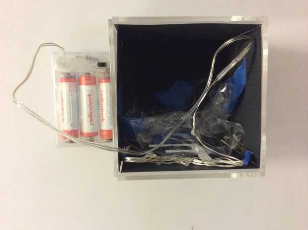 algunas envolturas de plástico y una cúpula alrededor de la letra en el interior. Si es arrugado, será más brillante. Tomar su LED y cuerdas alrededor del borde de su carta. Únalos con cinta adhesiva todo esto sin mostrar cadenas.