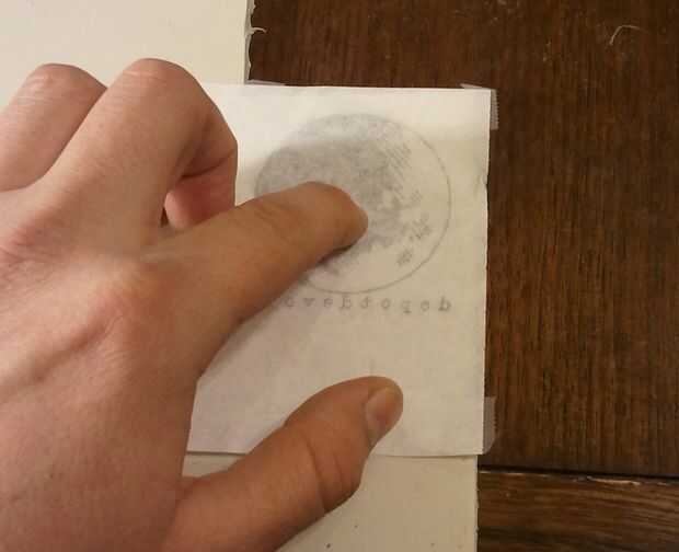 Siguiente y el método utiliza con más frecuencia, es dibujar o imprimir una imagen y cinta de papel sobre él. Luego, utilizando un lápiz, trace la imagen que quiero tallar fuertemente sobre el papel de calco. Finalmente, coloque la imagen en el material de talla y frote la espalda. Esto transfiere el grafito al material. Una desventaja es que las líneas tienden a ser más grueso cuando se utiliza este método, por lo que la precisión es más difícil. Además, es fácil resbalar o difuminar al transferir.