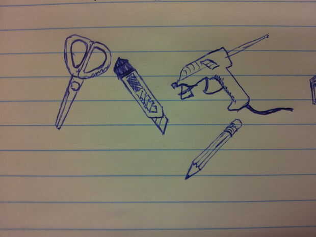 Esto es para el material y herramientas, tijeras, cutter y pistola de pegamento caliente podrían ser peligroso usar con cuidado.