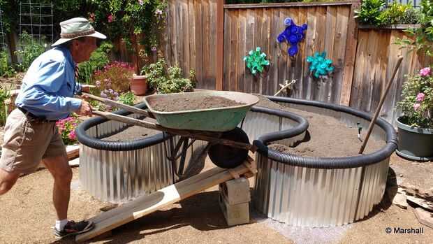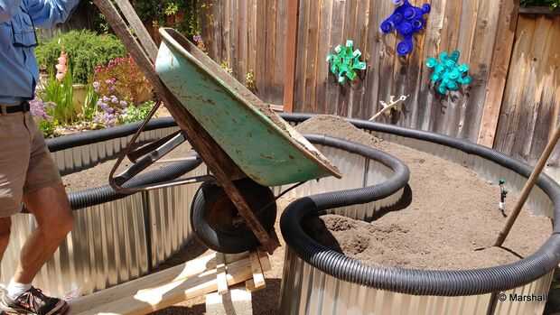 por fin llego a llenar mi jardín de cama elevada con el suelo. Usé una buena "mezcla rica"
