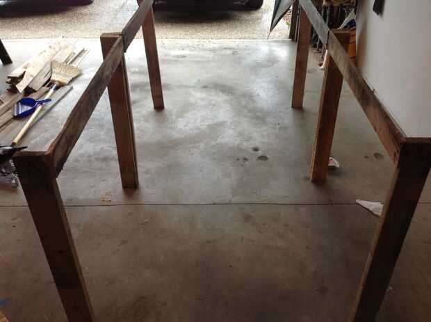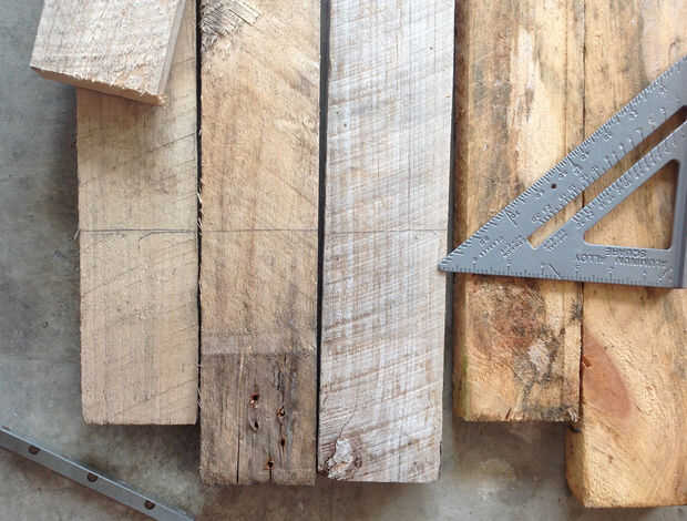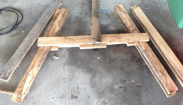 2. Una vez que se han cortado todas las tablas será necesario combinar dos de las tablas para hacer dos juegos de 4 x 4. Estas serán las piernas del centro.