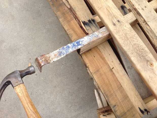 - Ubicar los clavos que están empujando hacia fuera un poco y usan el martillo para tirar hacia fuera.