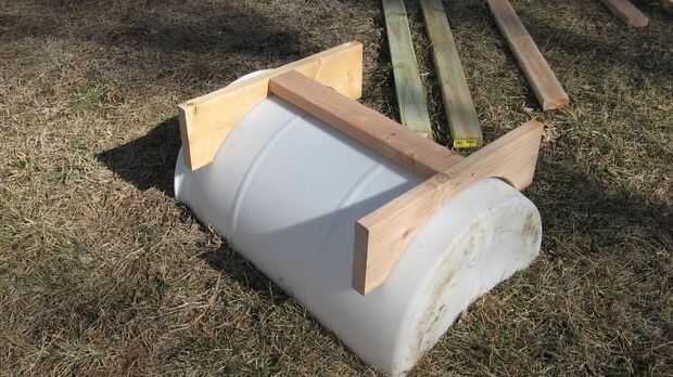 Recortas los barriles a lo largo con una sierra reciprocante, que es lo que usé, o un jig Sierra. Asegúrese de que cuando hagas el corte, que usted está cortando así el tapón será sobre lo que será la parte inferior de la cama, si se corta esta forma, tendrás dos mitades que cada uno tiene un tapón en él. Esto es útil para el drenaje, si es necesario. Sólo perforó un 1/2" agujero en el tapón y tenía ese extremo en el lado cuesta abajo de la cama.