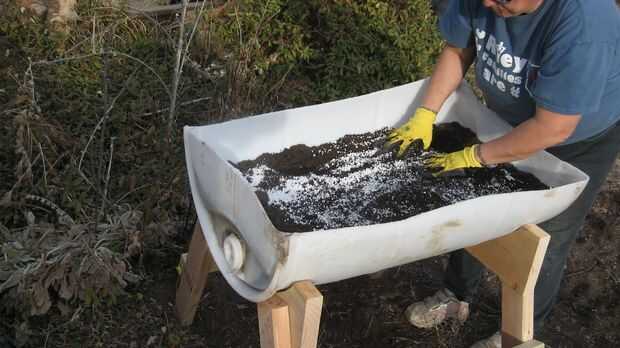 Proyección ha añadido a la parte inferior de la barrica y poner unas piedras por el agujero perforado en el tapón para mantenerlo despejado de la suciedad. Una vez que la pantalla fue presentada, hemos añadido tres bolsas de suelo, con cada bolsa de 40 libras de peso. También hemos añadido la vermiculita para airear el suelo algunos. También hemos añadido algunos compost al suelo. Finalmente plantamos plantas de fresa en el barril.