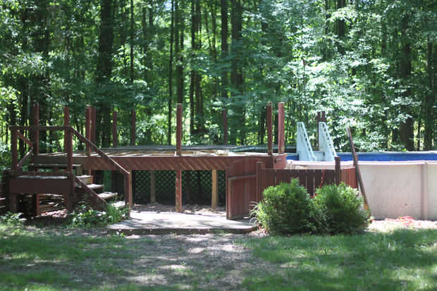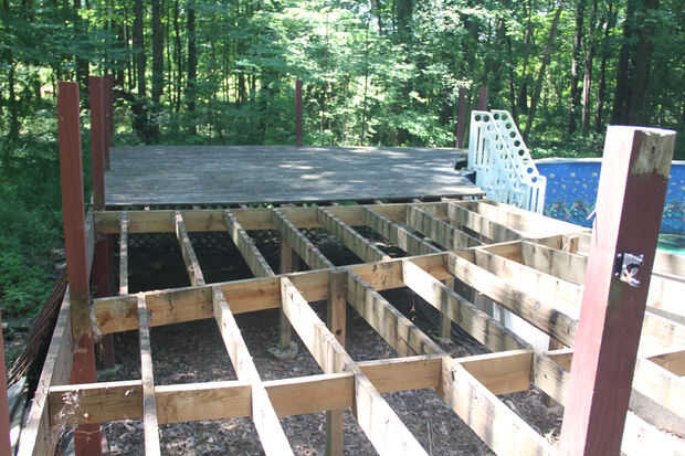 Mi hijo me ayudó a tomar la barandilla de la cubierta. Le gustaba golpear los husos. Apeló a su destructividad innata de 9 año de edad. En 100 grados el tiempo quitó la mitad de la terraza de la piscina.