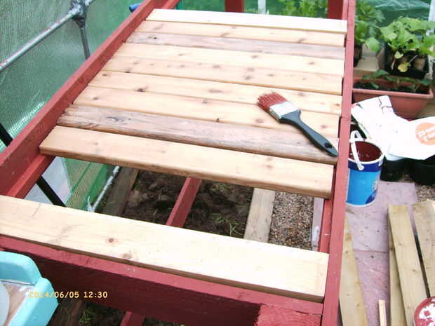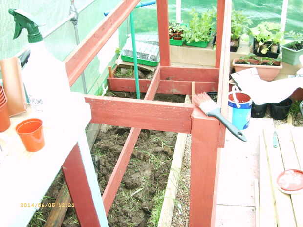 Con el tiempo está húmedo y nublado, pensé en que completaría la construcción de una cama elevada con estante interior mi túnel de Polly.