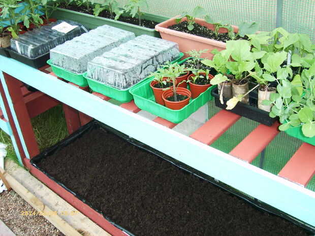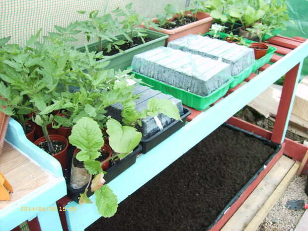 Ahora tengo un estante para bandejas y jardineras, con los listones ancho para permitir que un montón de luz a través.